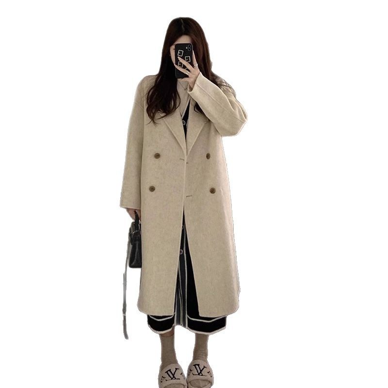 韩国HANDMADE时尚高品质气质山羊绒长款过膝双面羊绒大衣外套女