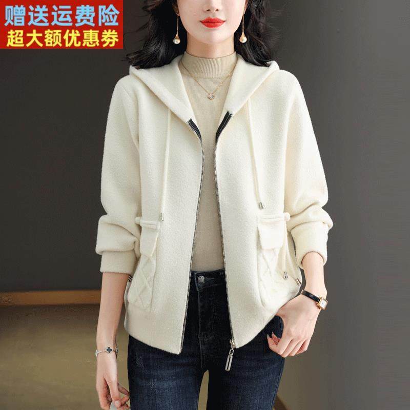 淘宝胖mm加大码连帽女士羊绒外套百搭短款开衫女秋冬双面绒羊毛大衣