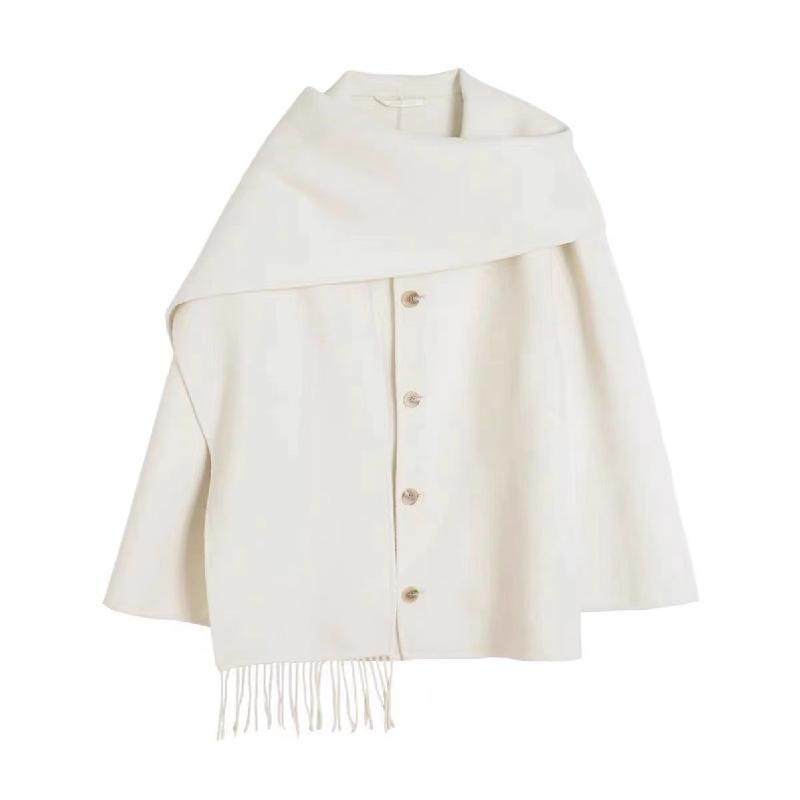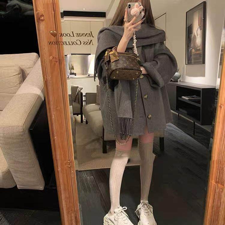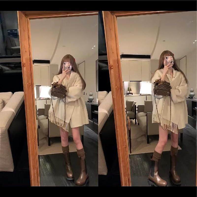淘宝大码胖mm甜美高级感流苏围巾斗篷毛呢外套女秋冬辣妹显瘦呢子大衣