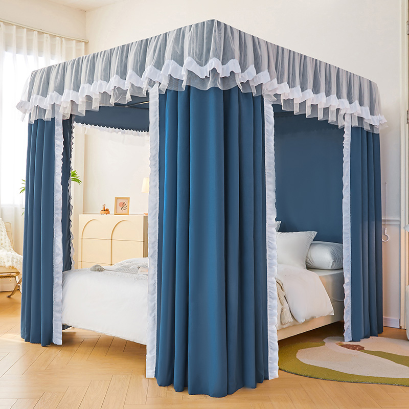 天猫遮光床帘家用卧室落地封闭防尘床幔支架蚊帐一体式公主风保暖少女