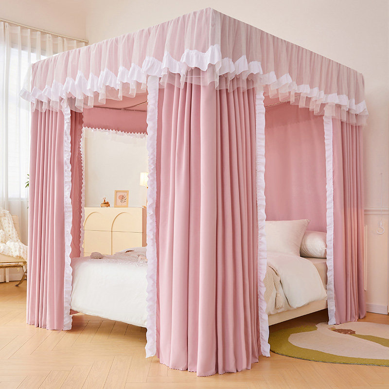 u型伸缩落地蚊帐家用2025新款卧室高级支架杆加粗加厚公主风床帘