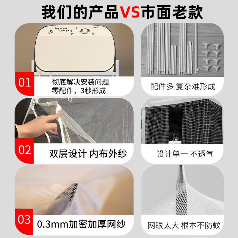 淘蚊帐床帘一体式遮光蒙古包免安装学生宿舍用上下铺室内帐篷子母床