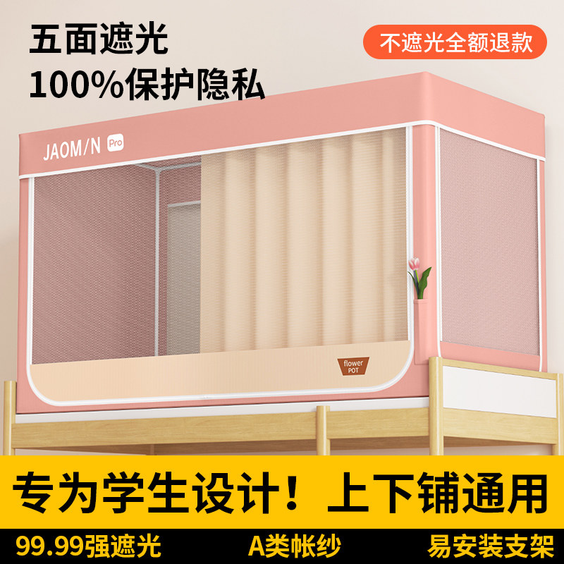 天猫新款学生宿舍蚊帐床帘一体式带支架拉链款寝室上下铺遮光布全封闭