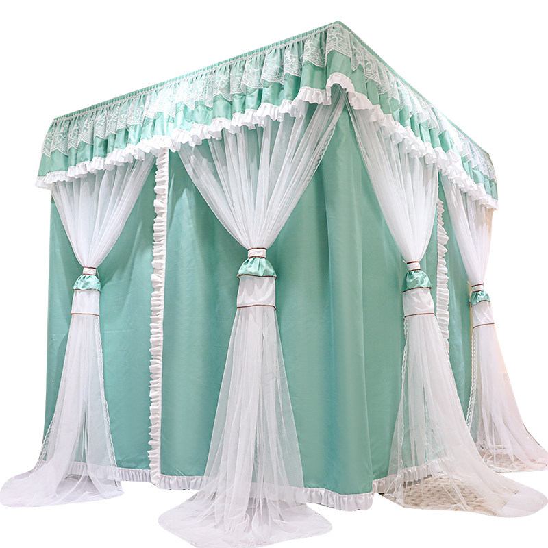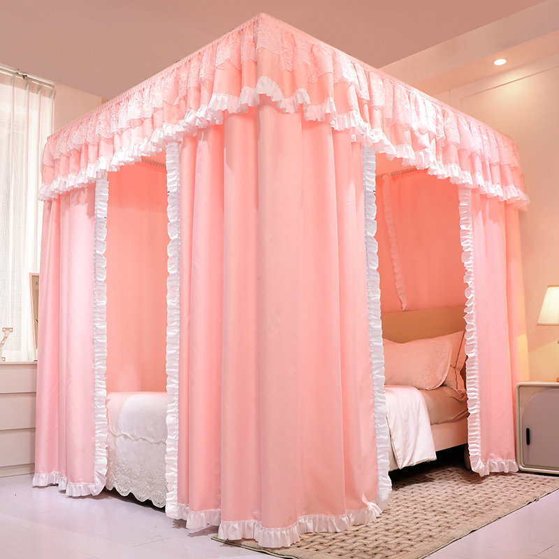 淘宝物理遮光床帘双层蚊帐一体式落地宫廷床幔卧室家用防风防尘全封闭
