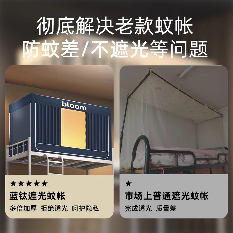 天猫强遮光床帘蚊帐一体式大学生宿舍单人上下铺专用住校寝室全包封闭