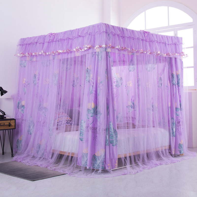 淘物理遮光床帘双层蚊帐一体式落地宫廷床幔卧室家用防风防尘全封闭