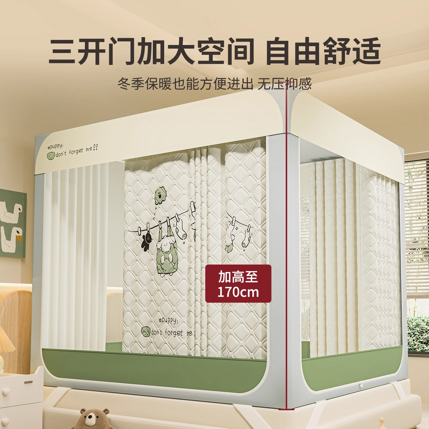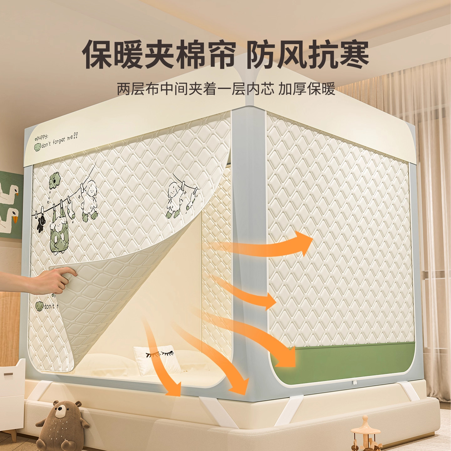 淘宝A类保暖蚊帐加厚遮光卧室夹棉挡风床上帐篷儿童防摔遮光床帘冬天