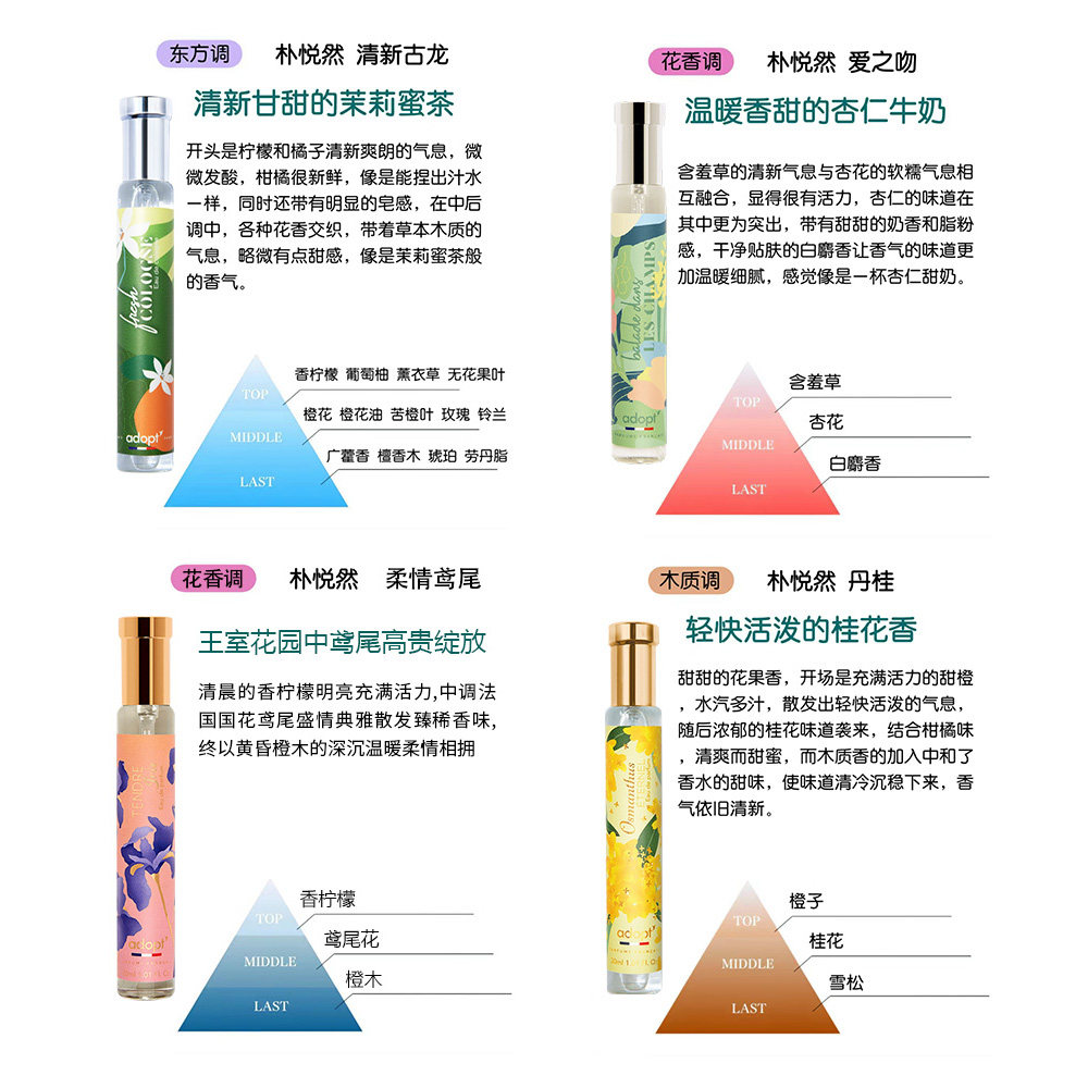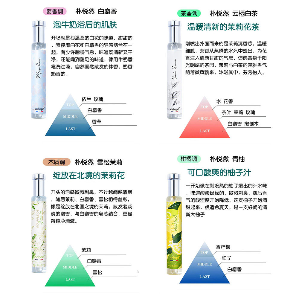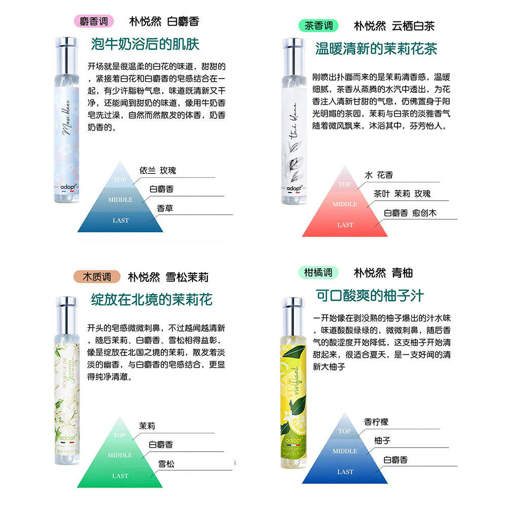 淘宝法国adopt白麝香香水云栖白茶持久淡香女士男雪松茉莉青柚朴悦然