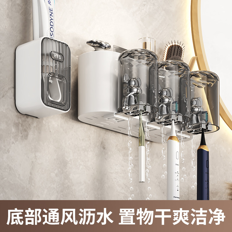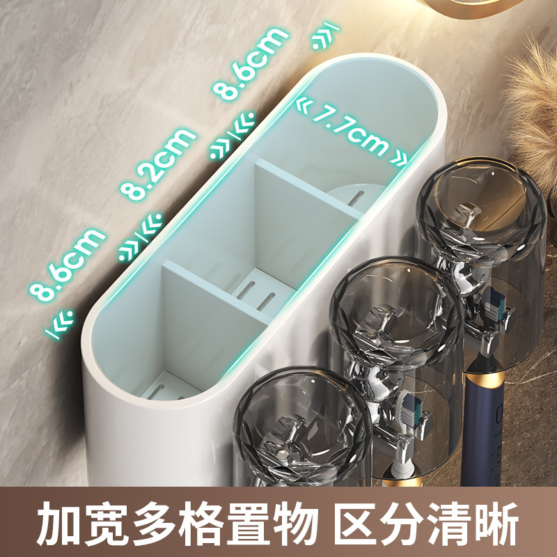 天猫卫生间牙刷牙膏置物架浴室免打孔壁挂式刷牙杯漱口杯电动牙刷架子