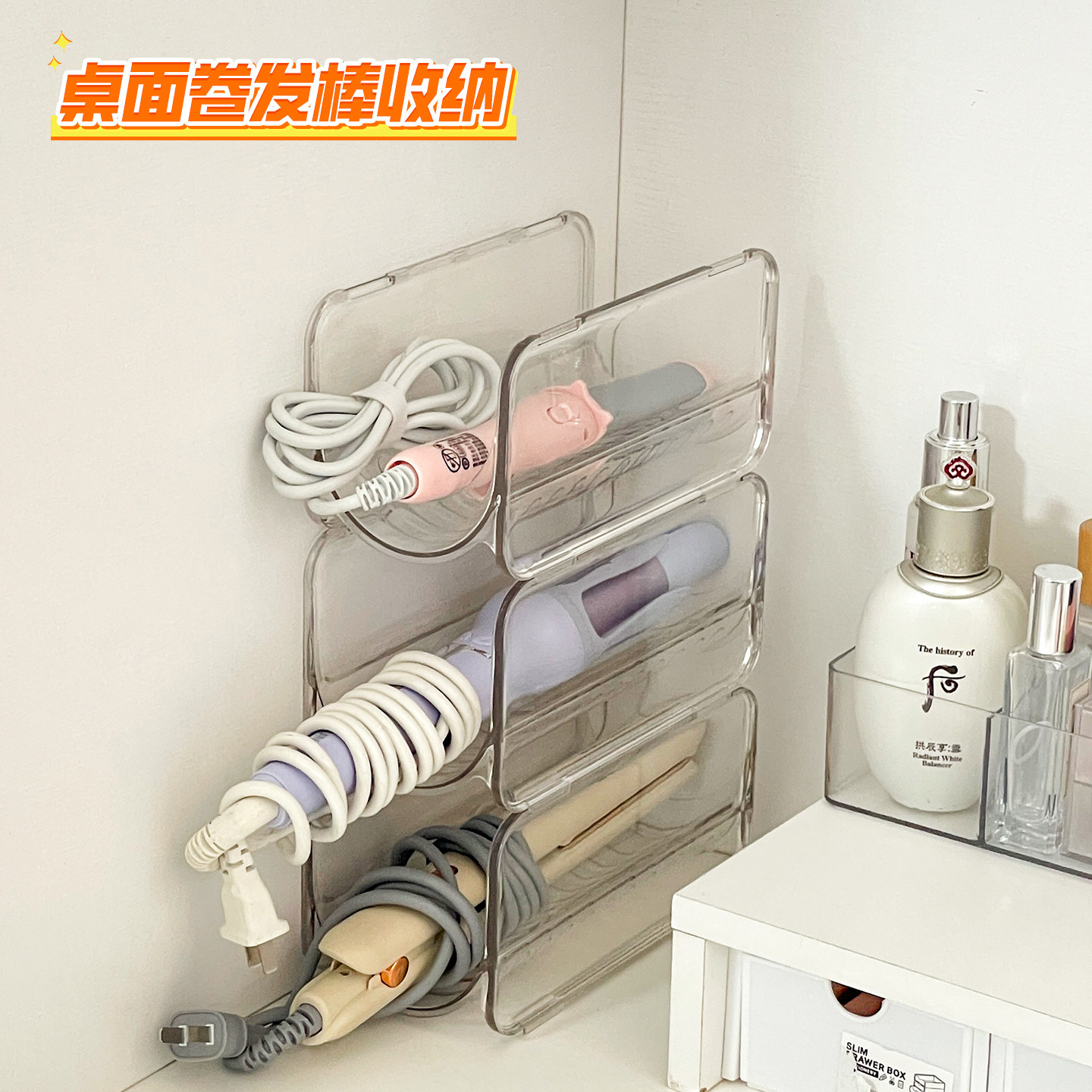 淘宝卷发棒收纳架桌面多层可叠加透明加厚吹风筒直板夹浴室台面置物架