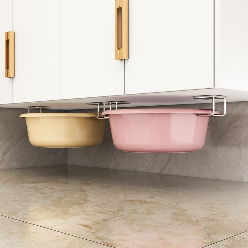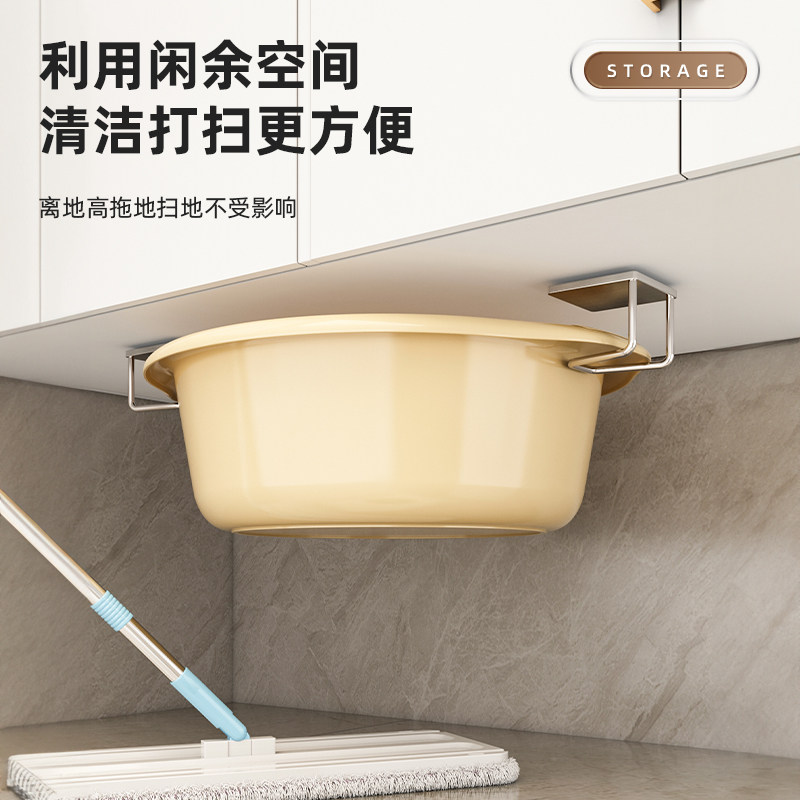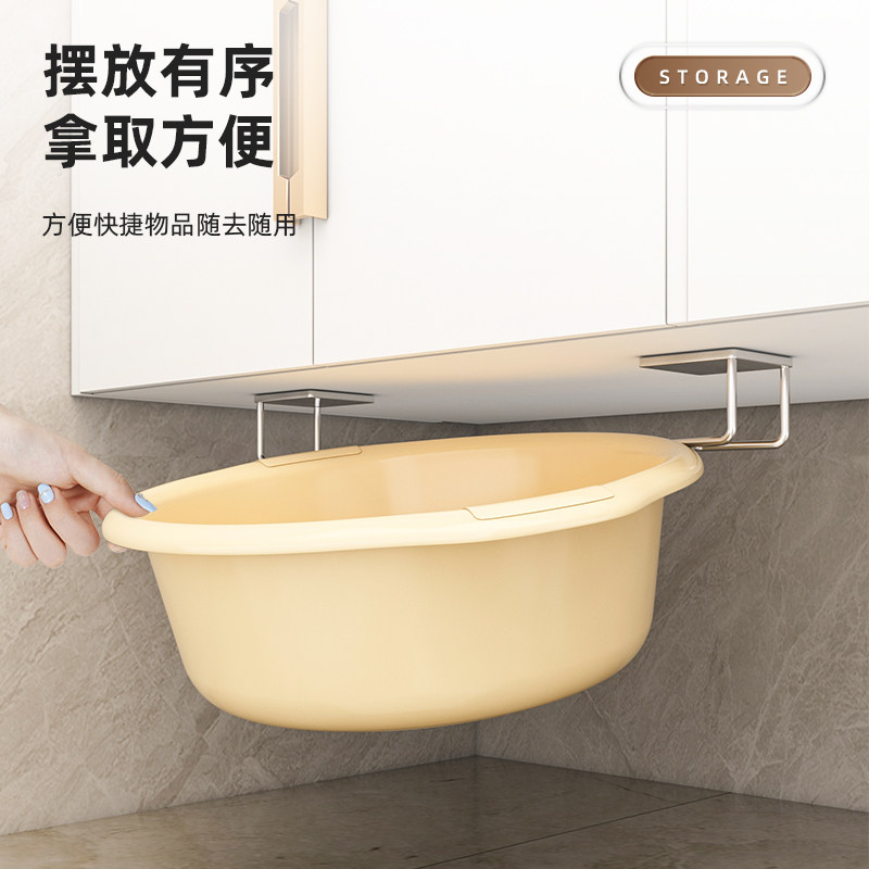 天猫浴室柜下挂盆不锈钢收纳脸盆架卫生间免打孔壁挂式挂钩神器置物架