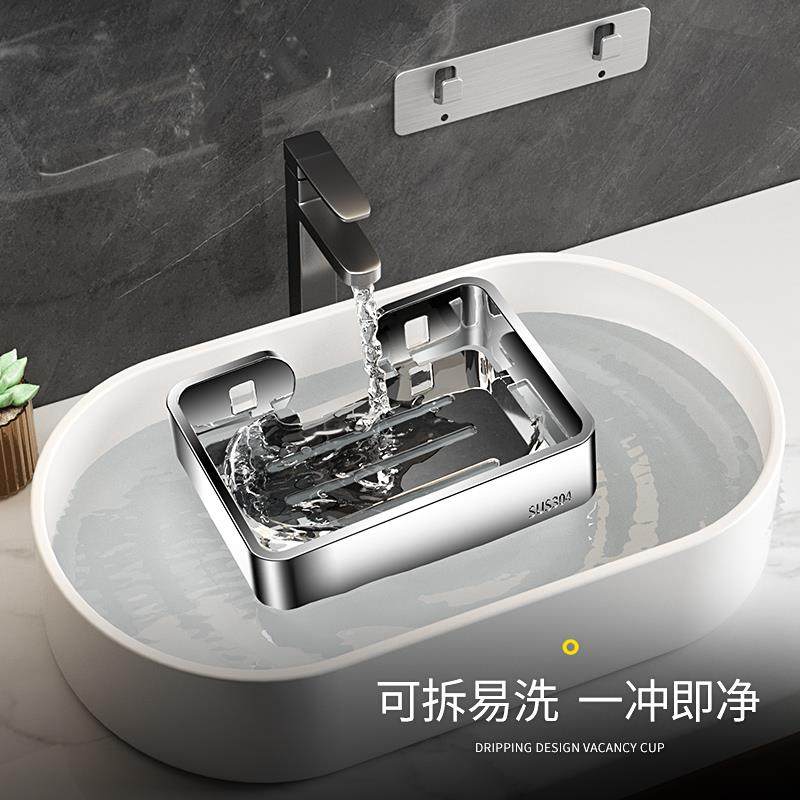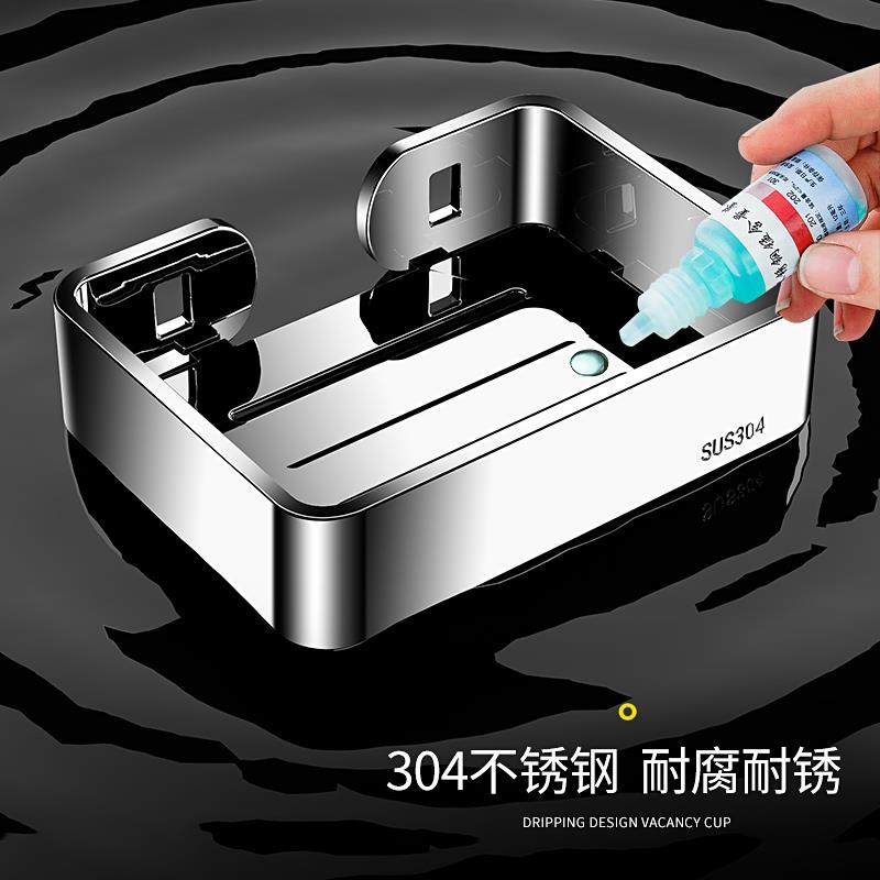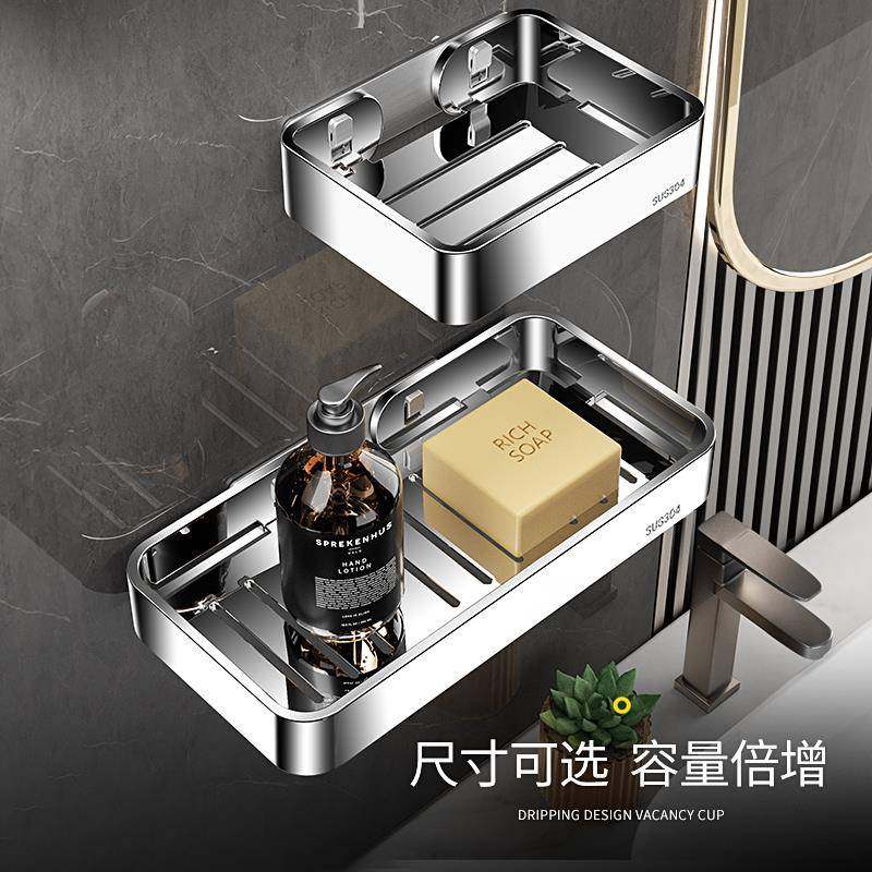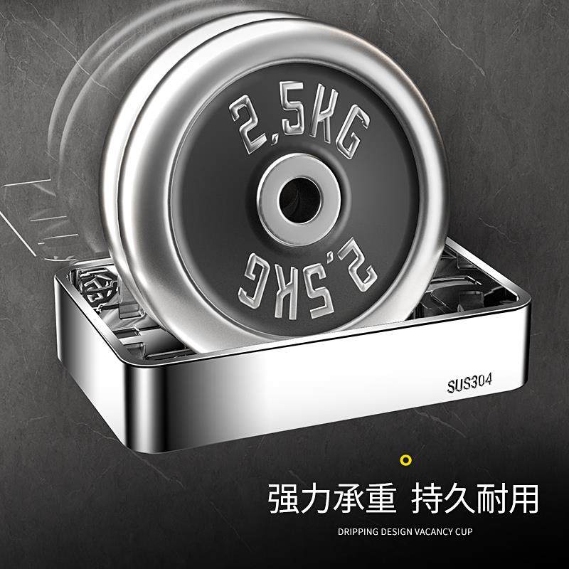 天猫304不锈钢肥皂盒卫生间免打孔壁挂式香皂沥水置物架浴室双层皂碟