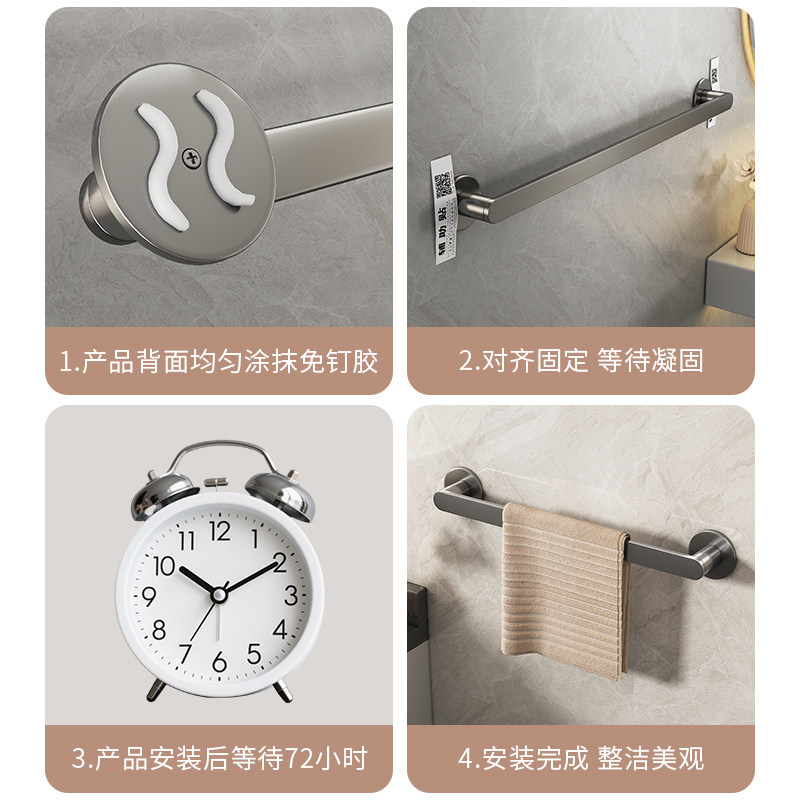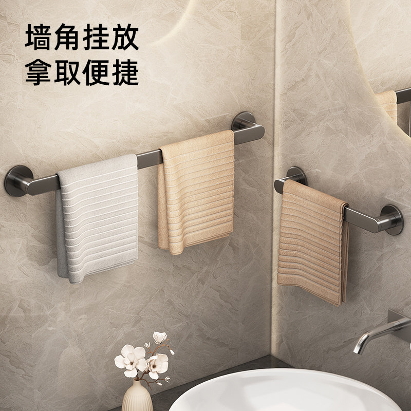 天猫卫生间晾毛巾杆浴室免打孔壁挂式置物浴巾单杆厕所洗手间收纳架子
