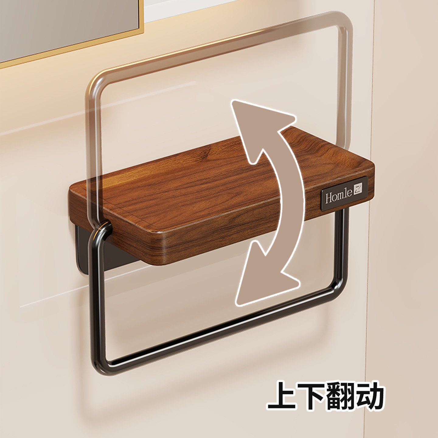 天猫实木毛巾架卫生间家用免打孔毛巾环浴室墙上壁挂浴巾收纳置物架子