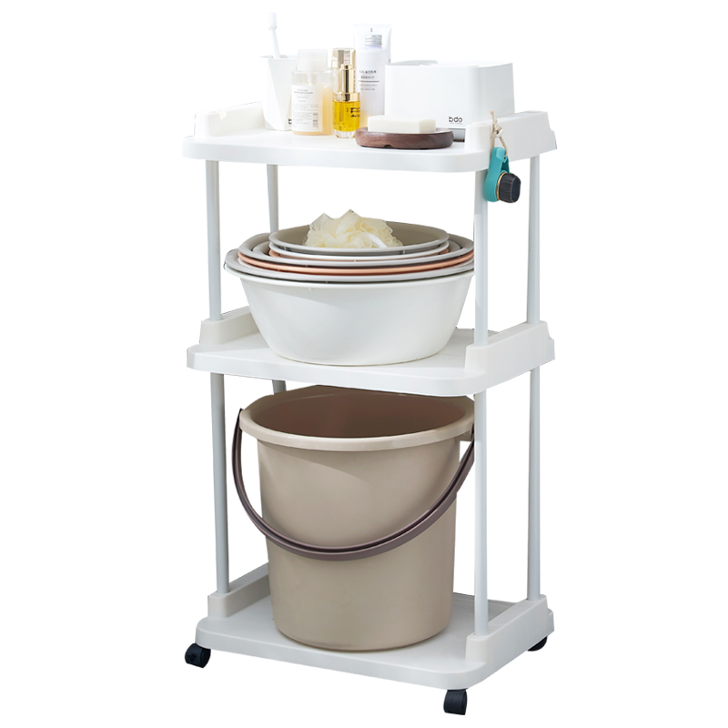 这款浴室置物架采用优质环保塑料材质,防水防潮、承重力强,适合潮湿的卫生间环境。落地式设计稳固安全,多层结构有效利用垂直空间,可整齐收纳洗衣机周边的水桶、脸盆、清洁用品及洗浴用品,让狭小浴室井然有序。开放式层架设计便于取放,底部加高防潮,避免积水腐蚀。安装简便,无需打孔,不伤墙面,适用于多种户型。无论是放在洗衣机旁还是洗手台边,都能提升空间利用率,打造整洁舒适的洗浴环境,是家庭卫浴收纳的实用之选。