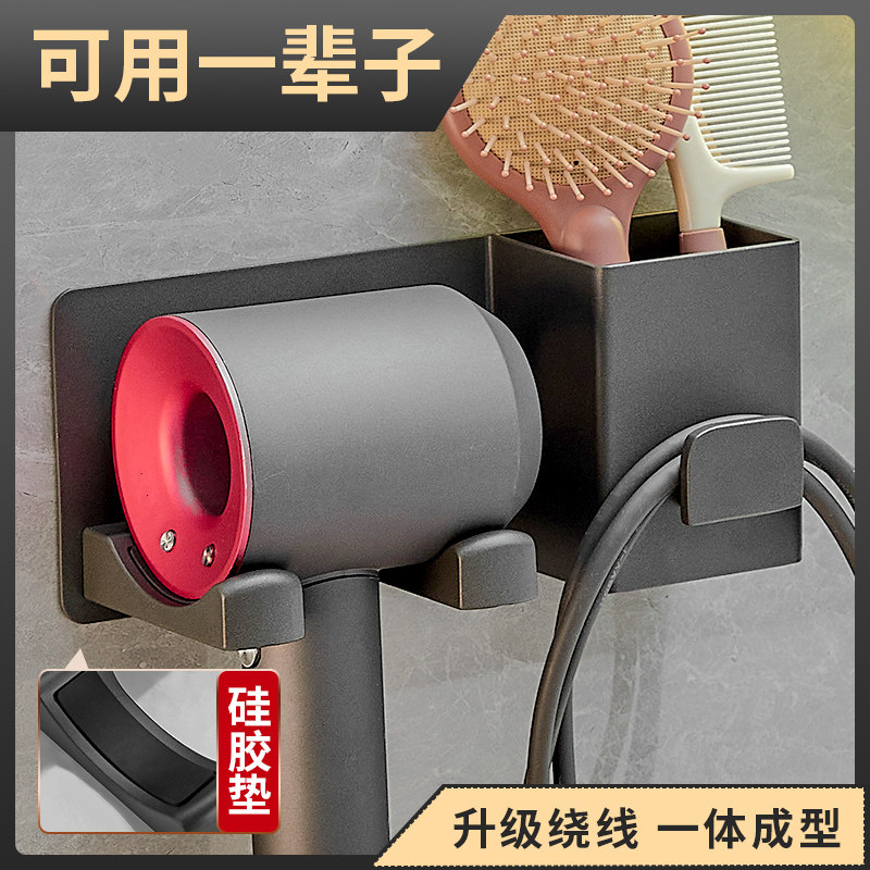 天猫适用戴森免打孔吹风机置物架太空铝浴室放电吹风筒支架卫生间挂架