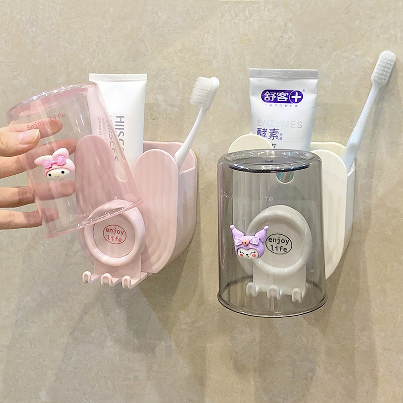 淘宝电动牙刷漱口杯置物架免打孔壁挂式卫生间浴室牙膏刷牙杯收纳架子