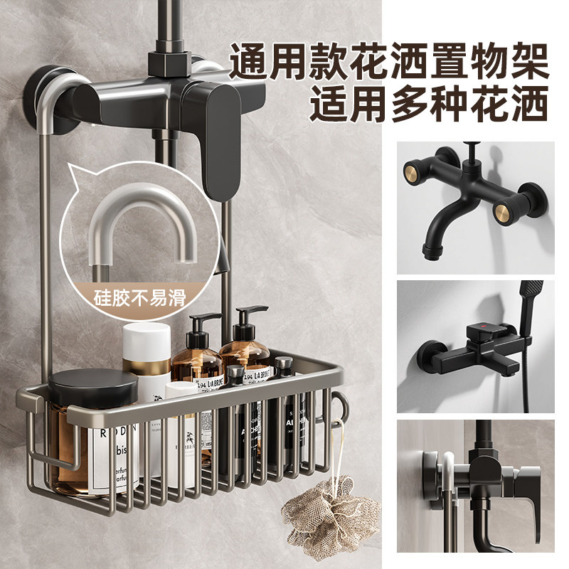天猫花洒置物架挂篮免打孔浴室放沐浴露厕所收纳洗发水洗澡淋浴房挂架