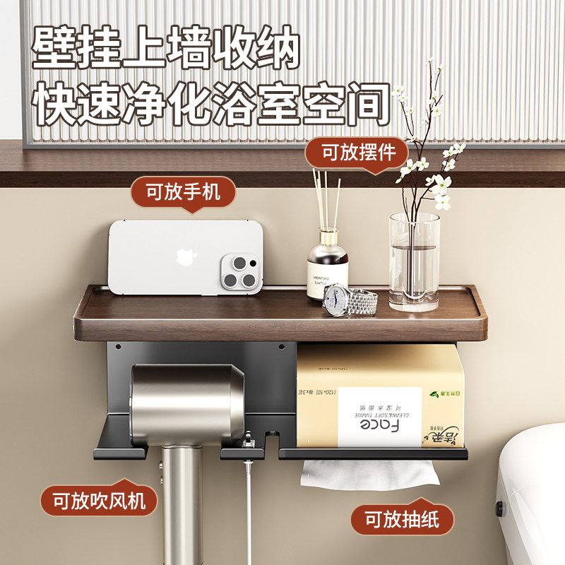 天吹风机置物架抽纸盒壁挂免打孔卫生间电吹风支架浴室风筒收纳挂架