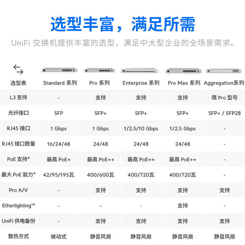 天猫UniFi机架交换机PoE/PoE+企业级千兆2.5G万兆25G/RJ45/SFP28接入汇聚统一网管3层安静运行Ubiquiti优倍快UBNT