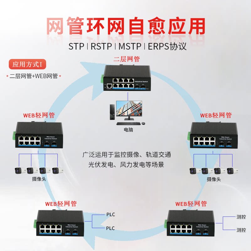 天猫巢客 工业级网管千兆2光4电2光8电万兆4光8电环网交换机光纤收发器2.5G交换机环网管理型VLAN隔离A6-228GWS