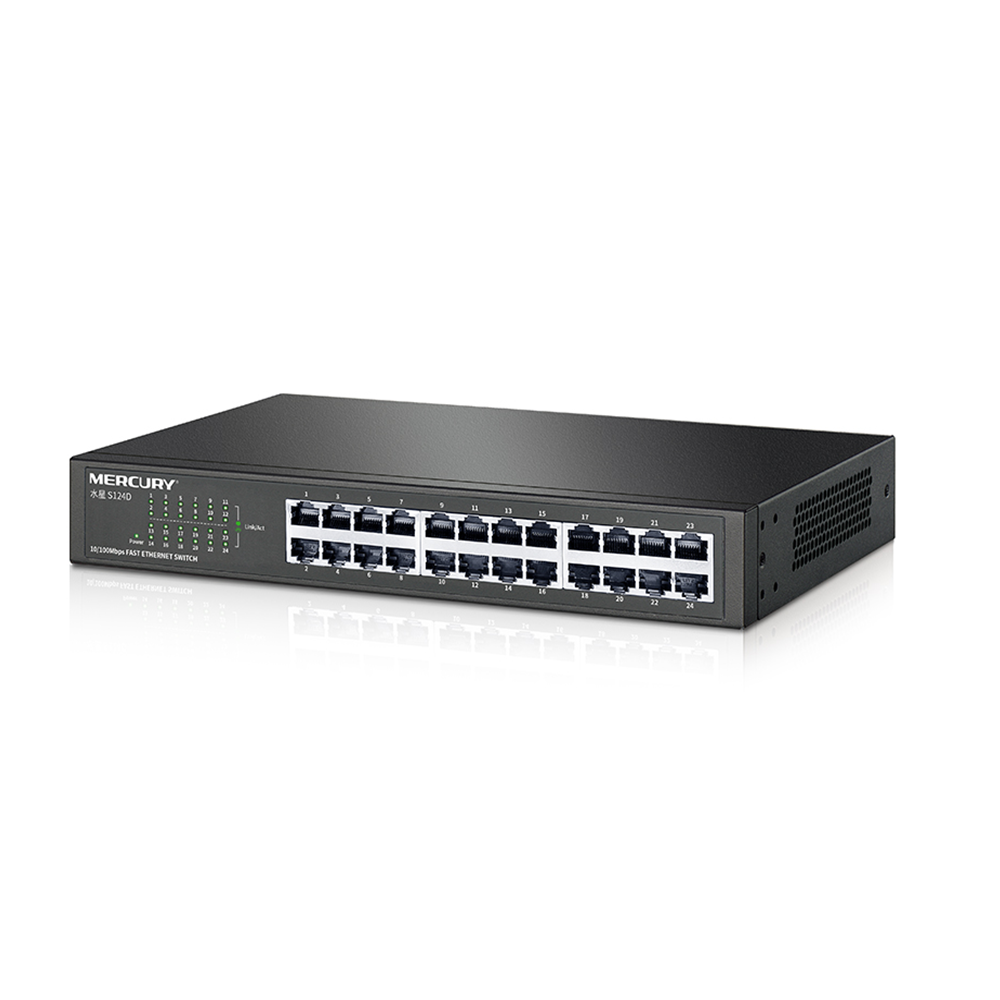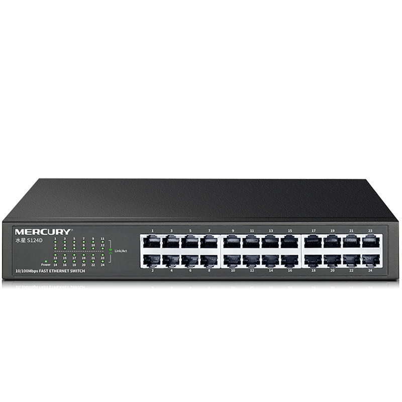 天猫MERCURY/水星S124D 24口百兆网络机架式交换机企业办公集线分线器