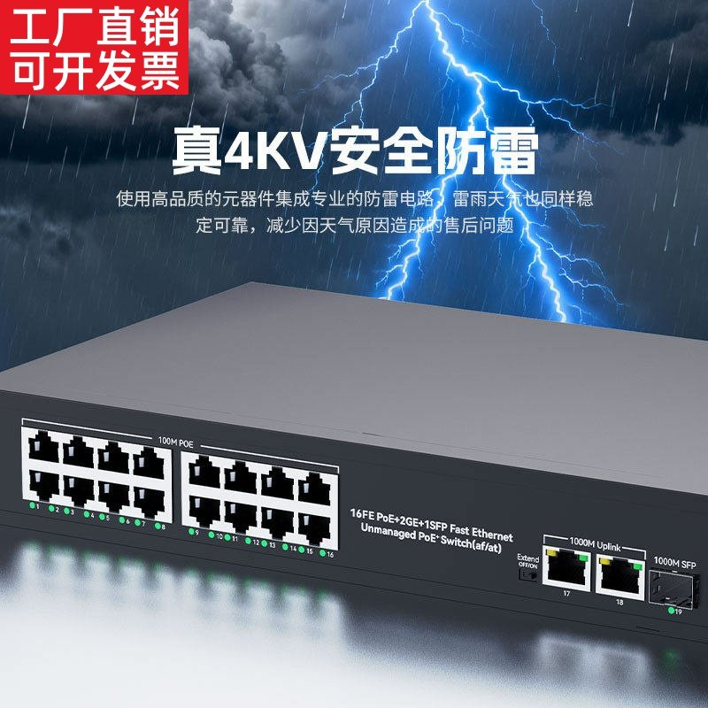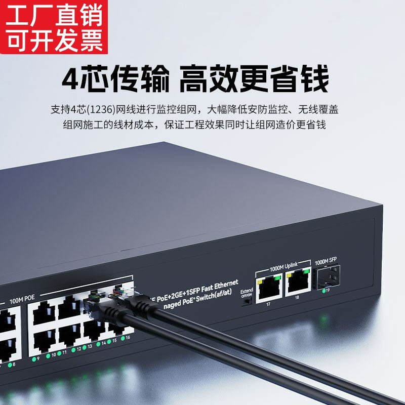淘宝深圳工厂国标16口POE交换机监控门禁项目以太网供电交换机SFP光口