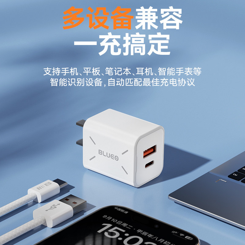 蓝猩30W氮化镓充电头采用先进GaN技术,体积小巧却动力强劲,支持PD快充协议,完美适配iPhone 15/16系列(含Pro/Pro Max)、iPad、小米Type-C设备及华为手机等。其智能温控与多重安全保护确保充电高效又安全。套装配备高品质USB-C to Lightning和USB-C数据线,实现苹果与安卓设备一线通用。无论是日常通勤还是差旅出行,都能为手机、平板快速补电,30分钟可为iPhone充至约50%电量。蓝猩充电头兼顾性能、便携与兼容性,是现代智能生活的理想快充解决方案。