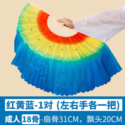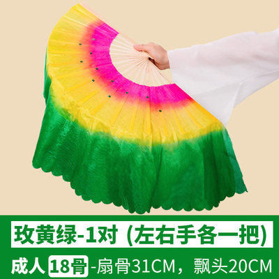 淘宝广场舞扇扭秧歌扇18骨儿童舞蹈扇成人长绸扇双面加长渐变扇左右手
