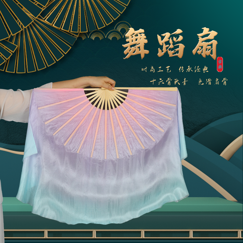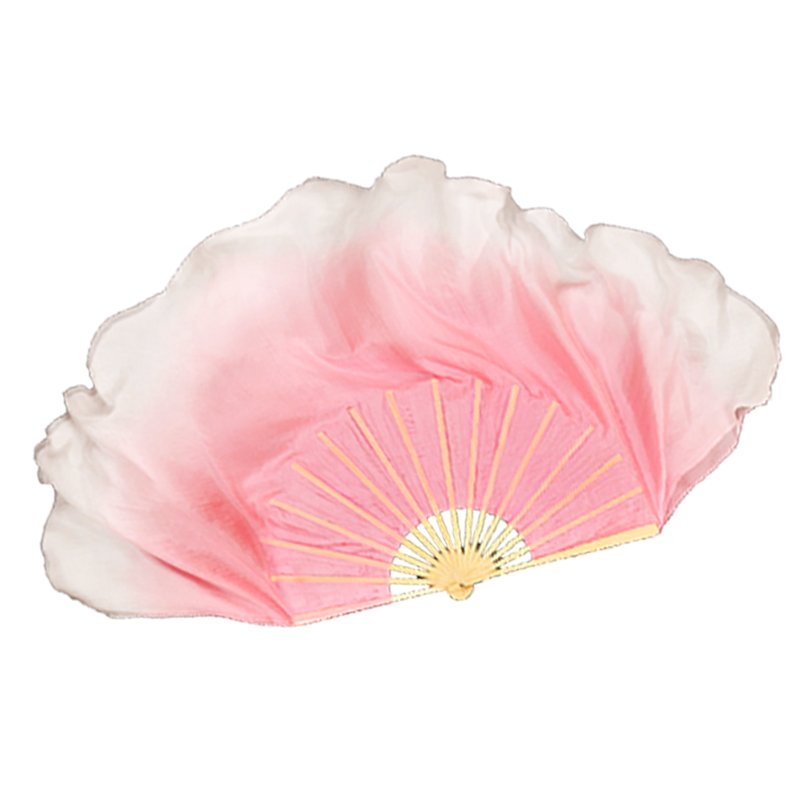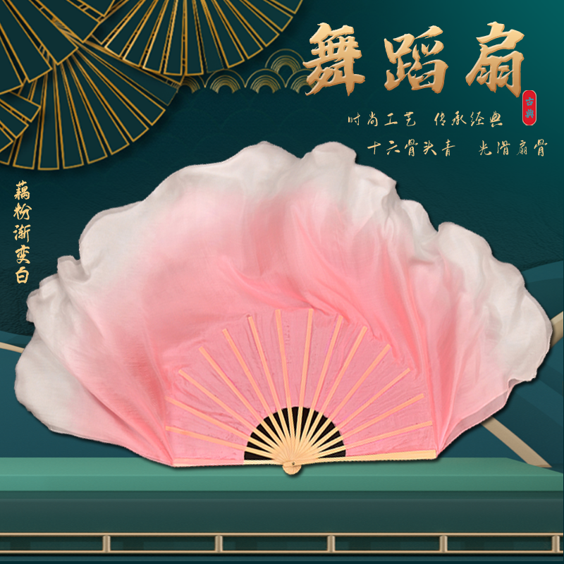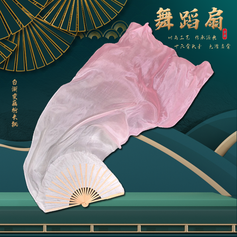 淘宝真丝舞蹈扇子跳舞扇藕粉渐变色儿童古典舞艺考扇胶州秧歌扇长绸扇
