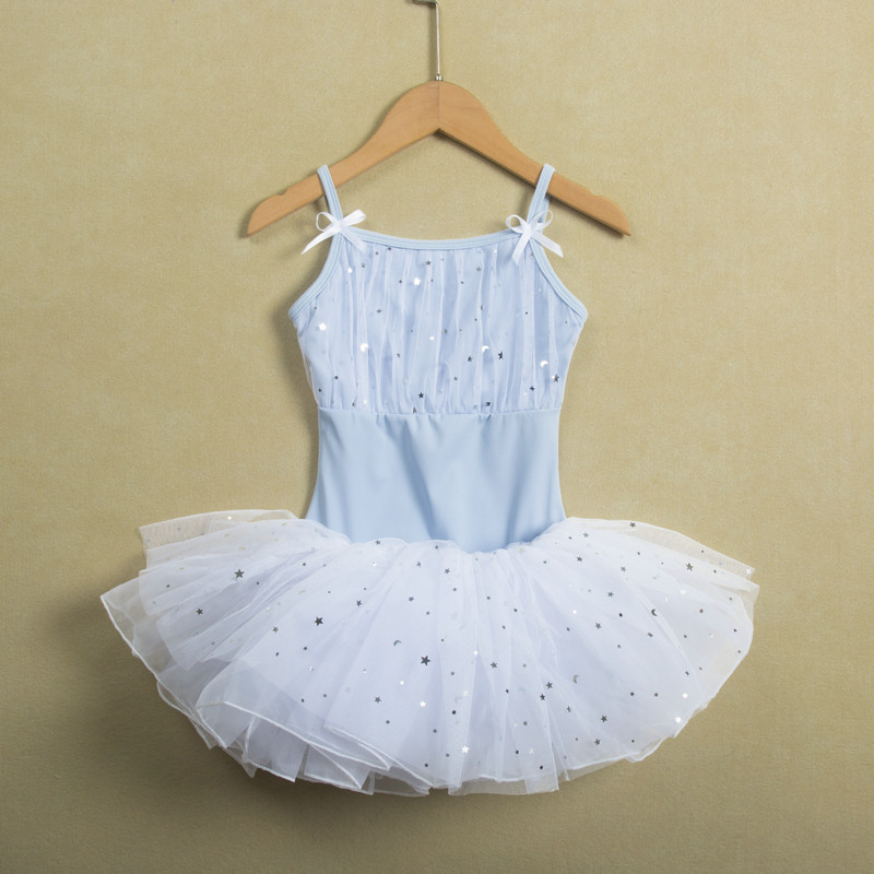 淘宝儿童春夏新款吊带亮片芭蕾民族舞蹈练功连体服纱裙表演演出纱裙
