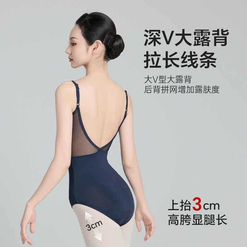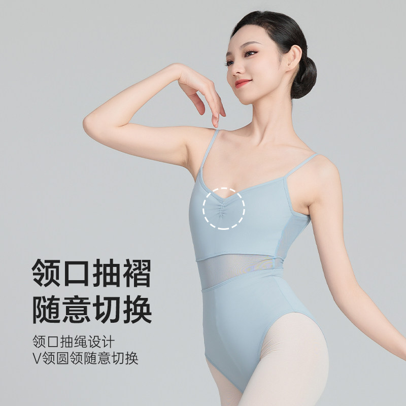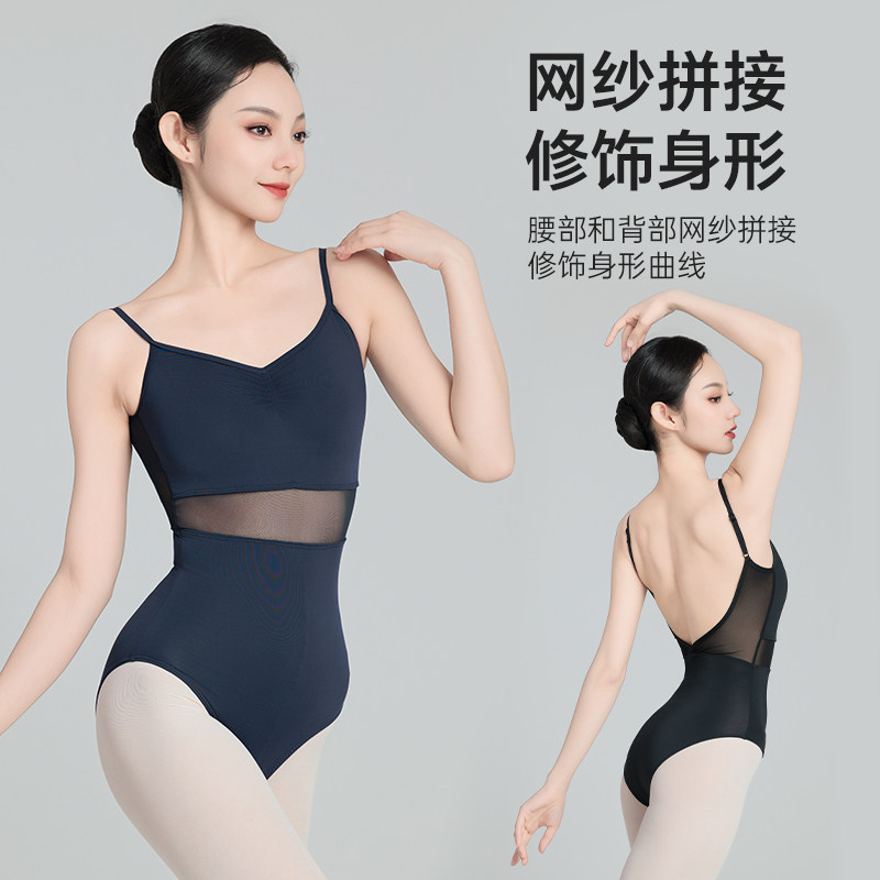 淘宝芭蕾舞蹈服女夏吊带拼网连体服成人体操练功服高胯舞服练功艺考服