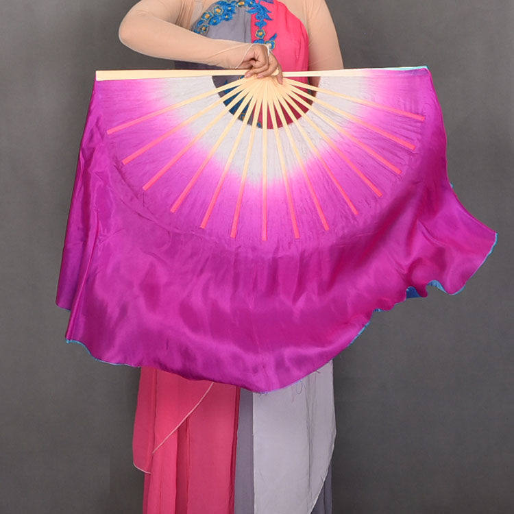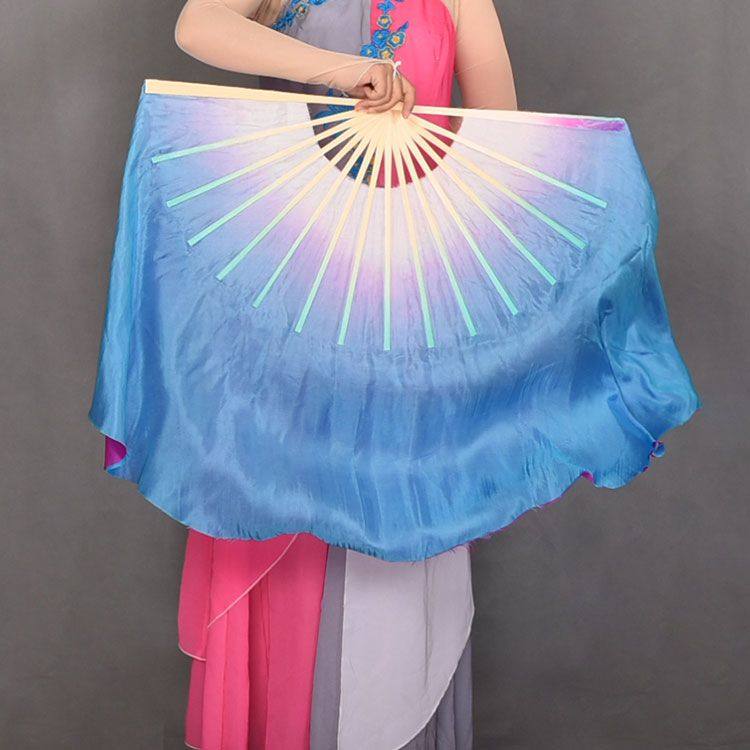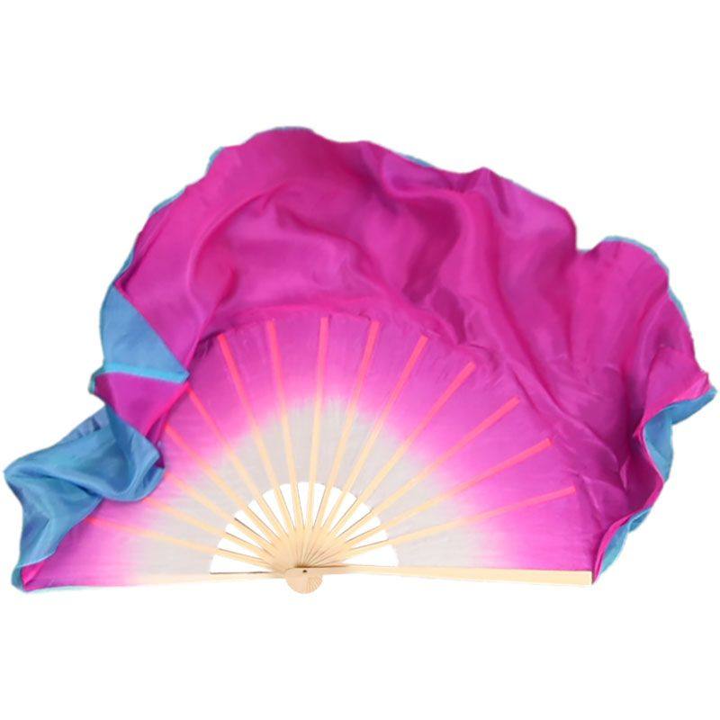 舞蹈扇子火焰扇加长扇跳舞扇三色渐变真丝扇广场舞长绸舞蹈扇长扇