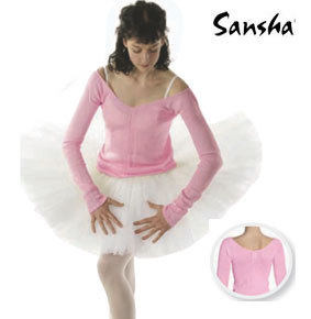 Sansha/三沙儿童芭蕾舞蹈服TUTU裙网纱练功裙短袖开裆演出服