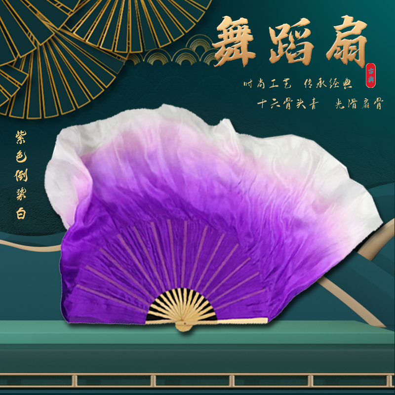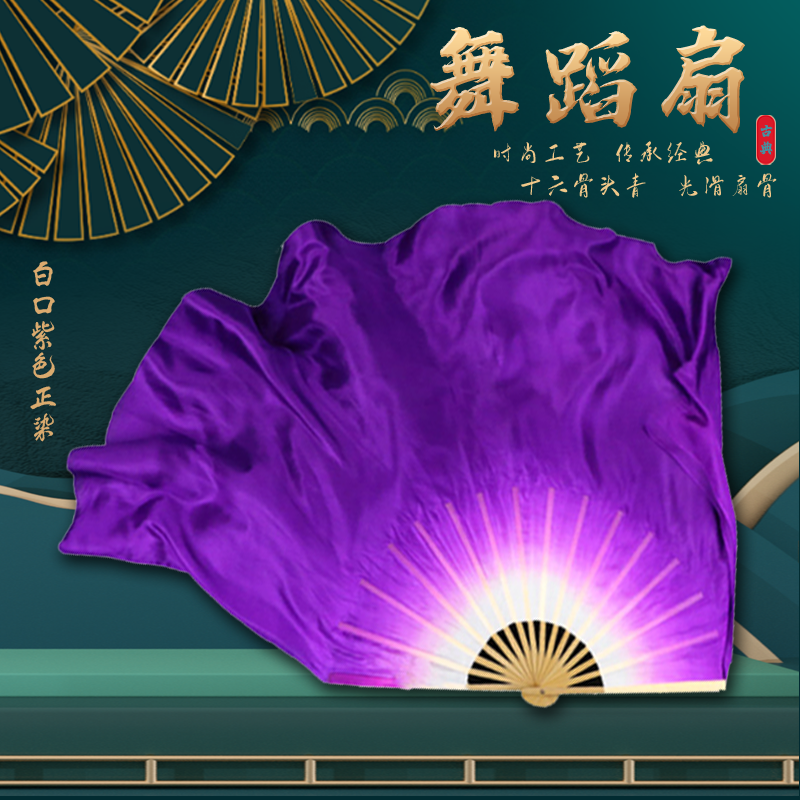 淘宝真丝舞蹈扇跳舞扇子双面扇紫色古典舞扇海派秧歌扇加长胶州秧歌扇