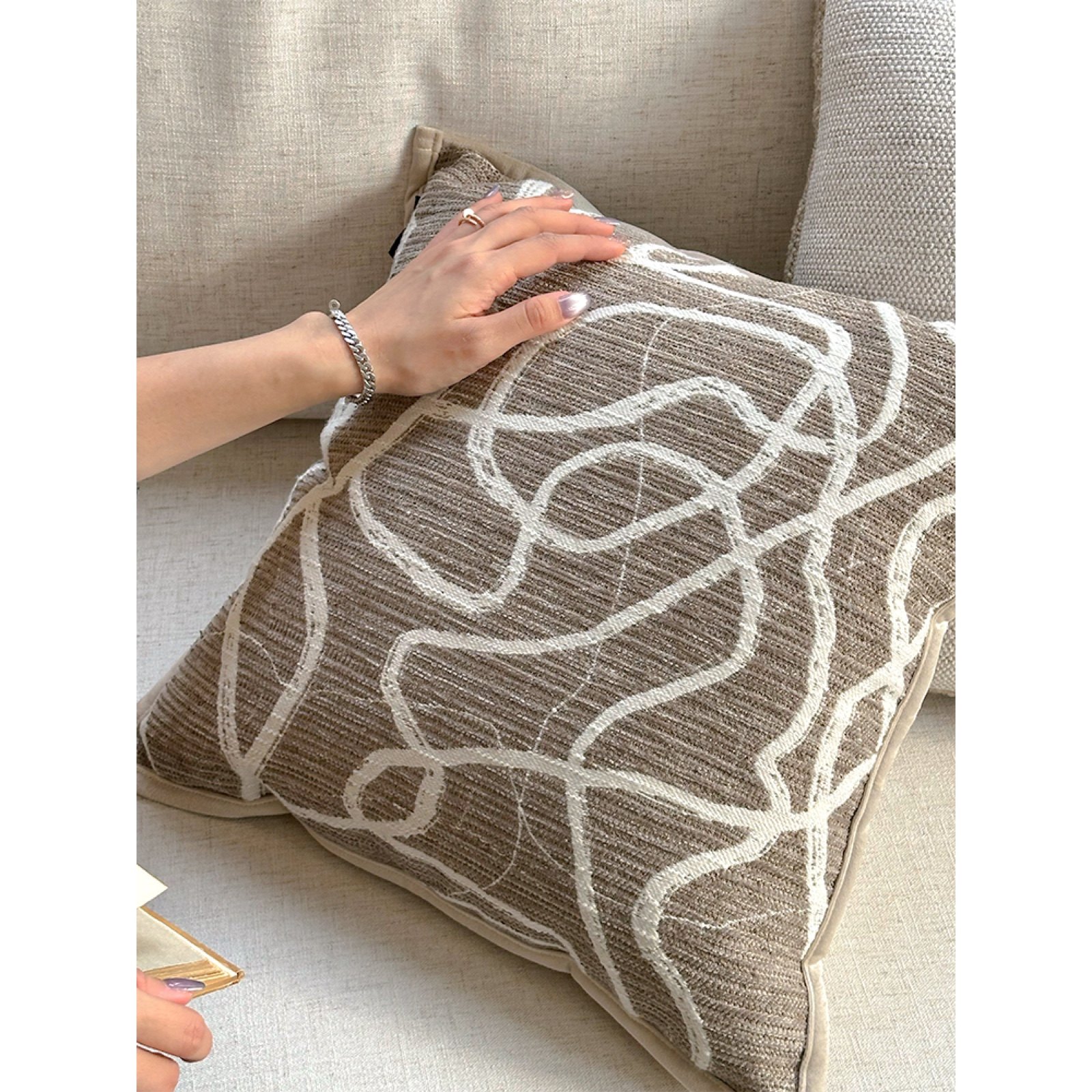 淘IKER轻奢高级感抱枕客厅沙发法式复古床上靠枕米咖棕色靠垫套含芯