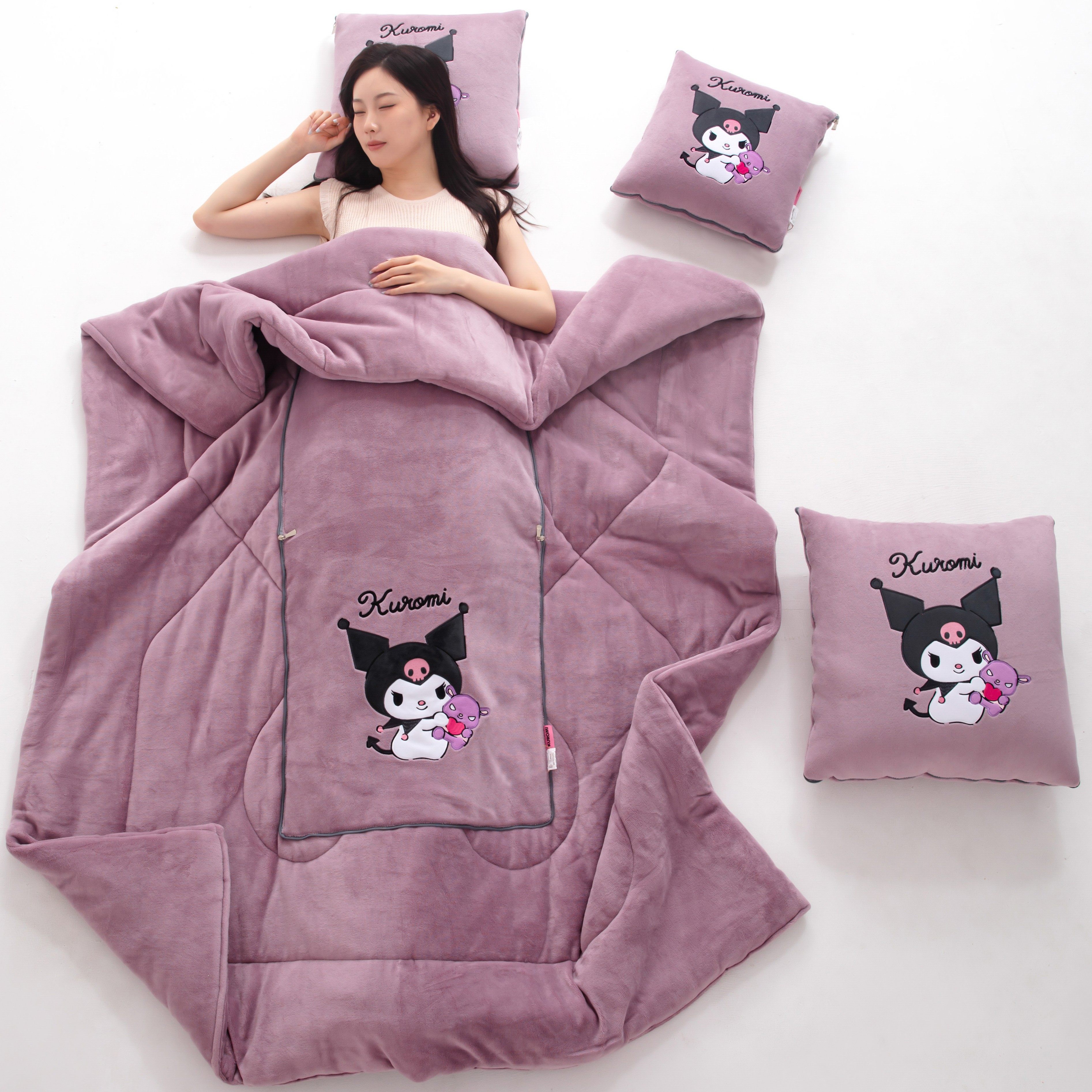 库洛米两用加厚抱枕被是一款集实用与萌趣于一体的居家好物。采用柔软亲肤面料,内里填充高密度PP棉,触感舒适,回弹性佳。一面为可爱库洛米卡通图案,另一面可作靠垫或枕头使用,展开后变身加厚午睡被,适合办公室、沙发、汽车、宿舍等多种场景。四季通用,保暖透气,轻松应对小憩、办公、旅行等需求。小巧便携,折叠后即为抱枕,节省空间。无论是自用还是送人,都是提升生活幸福感与舒适度的贴心选择,特别适合动漫爱好者与追求品质生活的你。