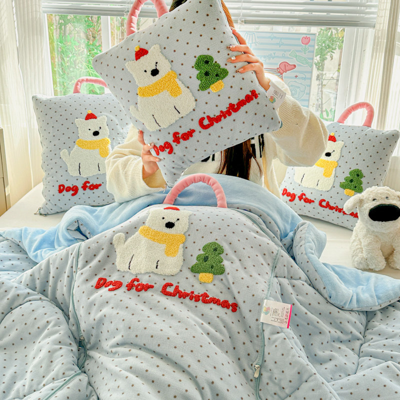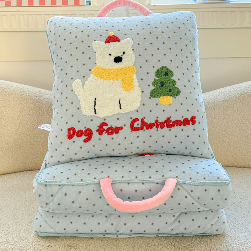 这款手提款两用抱枕被,集靠垫、枕头、午休被于一体,一物多用,便捷实用。采用柔软亲肤的牛奶绒面料,触感细腻,保暖舒适,适合四季使用。内置优质PP棉填充,蓬松有弹性,久坐不塌。独特手提设计,轻松携带,无论是办公室、汽车、沙发还是户外出行,都能随时享受惬意休憩。展开可作空调被或午休毯,折叠后变身抱枕或靠垫,满足多种场景需求。可爱狗狗图案点缀,增添温馨趣味,是上班族、学生党及居家生活的贴心伴侣,让舒适随行,温暖相伴。