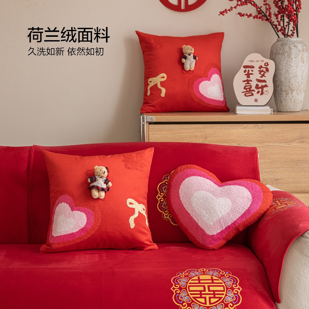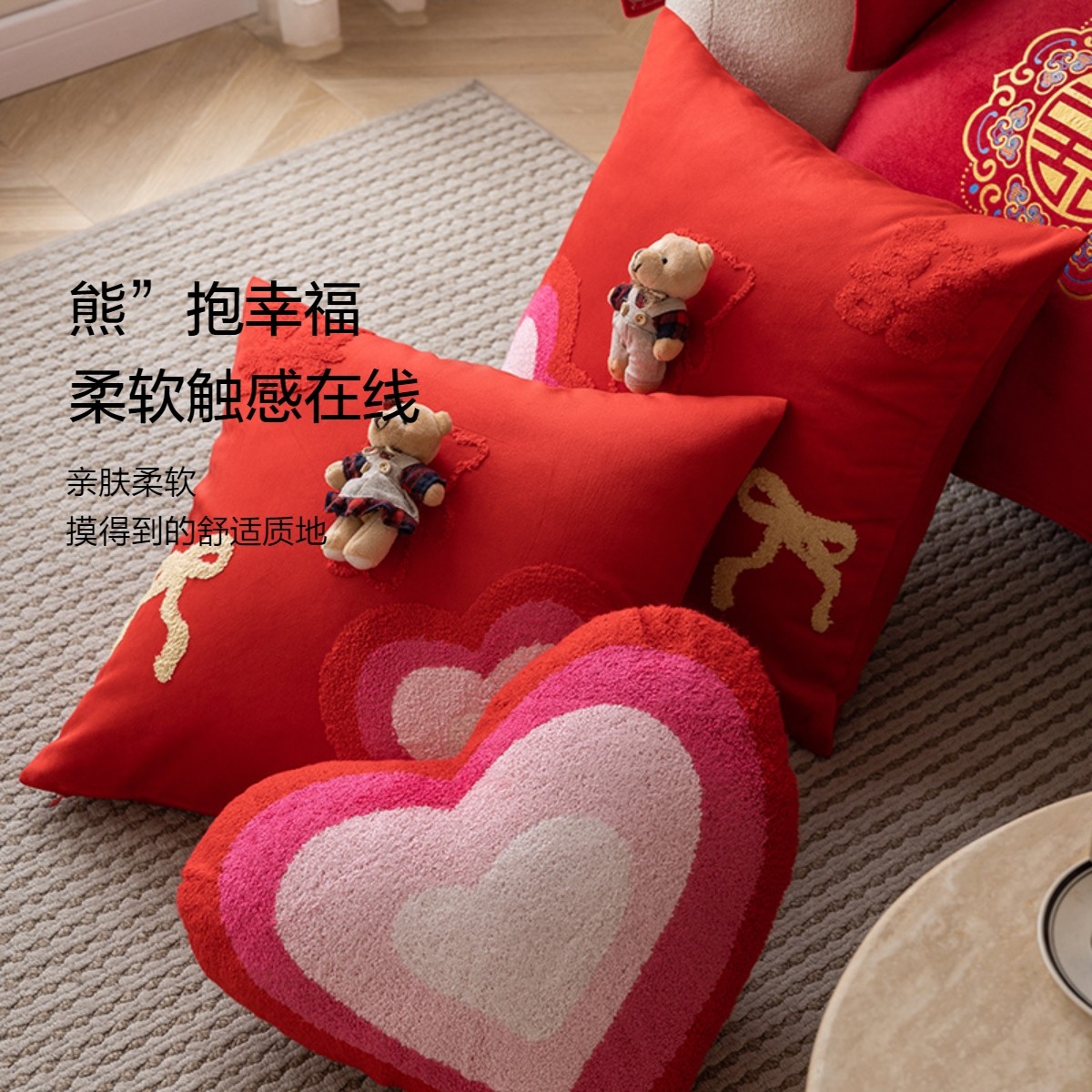 天猫水星家纺婚庆抱枕床头枕新郎新娘结婚靠垫枕头红色喜庆床品25新品