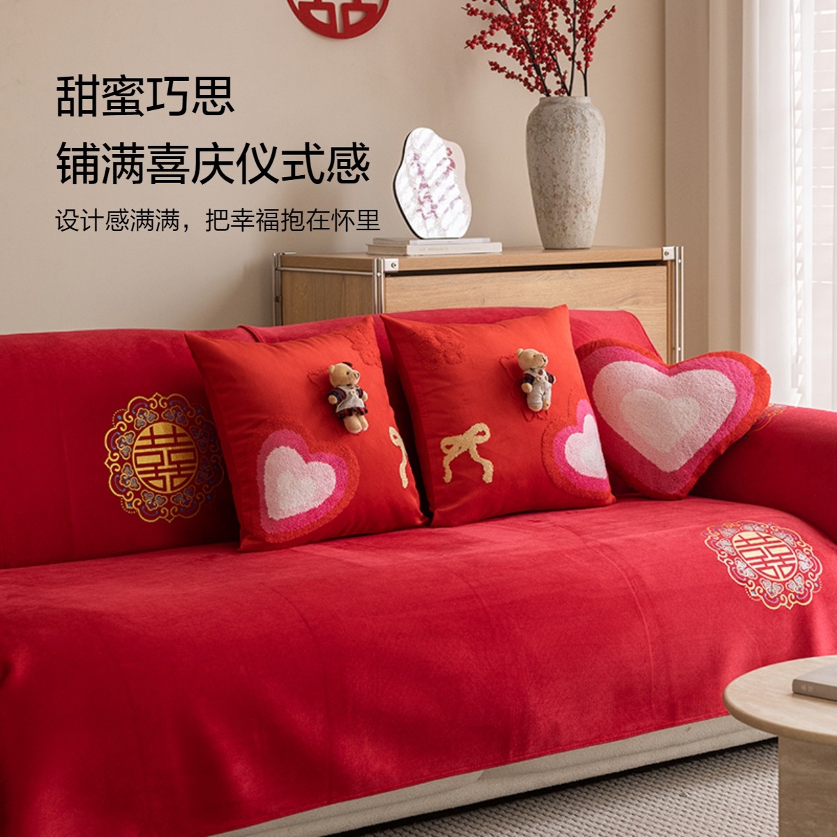 水星家纺2025年新品婚庆抱枕床头枕,专为新人打造,融合传统喜庆元素与现代家居美学。采用优质亲肤面料,柔软舒适,填充饱满蓬松,久靠不变形。经典中国红主色调,搭配精致刺绣“囍”字、龙凤呈祥或并蒂莲图案,寓意吉祥美满、百年好合。适用于婚房床头、沙发装饰,既是实用靠垫,也是浪漫婚房点睛之笔。多尺寸可选,适配不同家居场景。水星家纺以匠心工艺与贴心设计,为新人营造温馨甜蜜的新婚氛围,见证幸福时刻,是婚庆床品中兼具颜值与品质的理想之选。