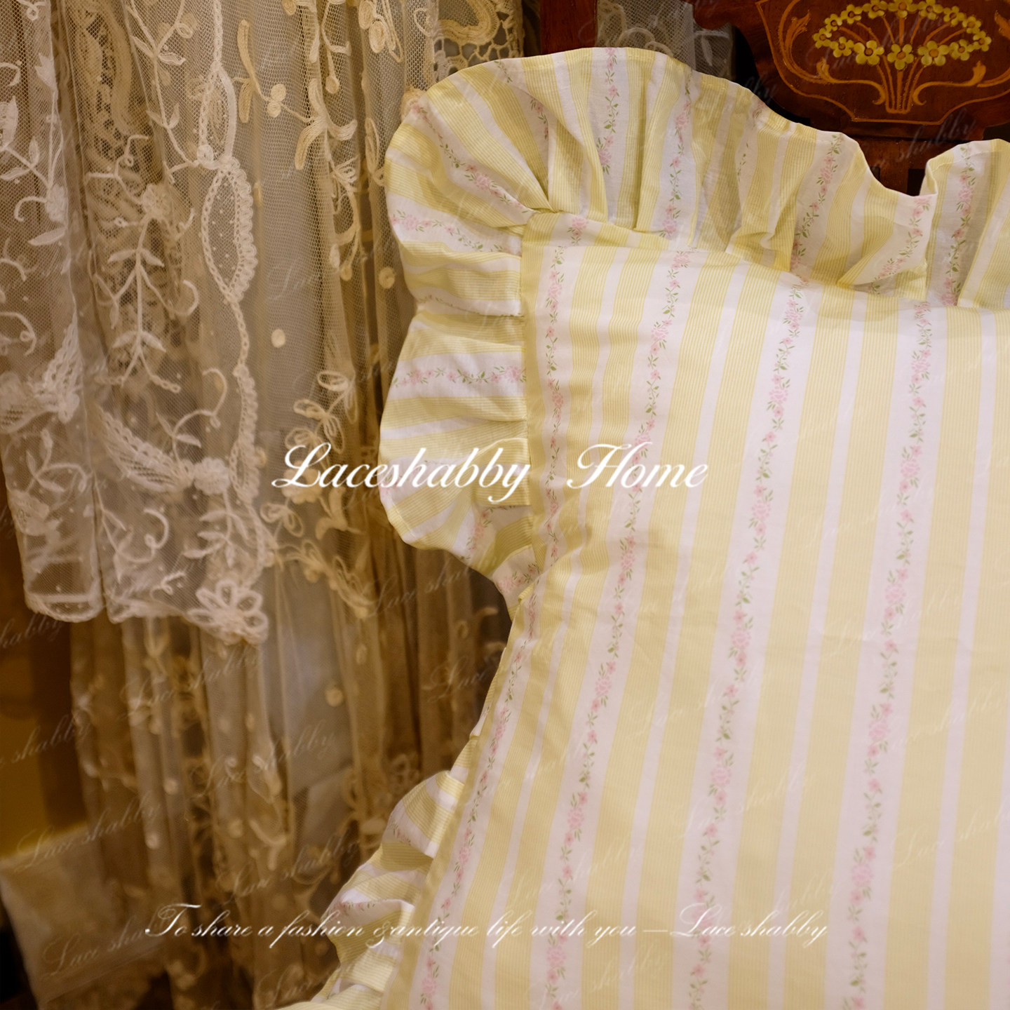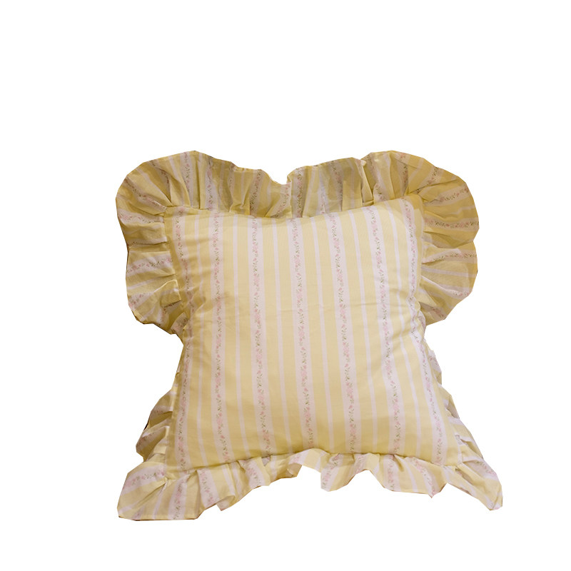 淘宝治愈系的家!LACESHABBY法式黄色纯棉条纹碎花荷叶边抱枕靠枕靠垫