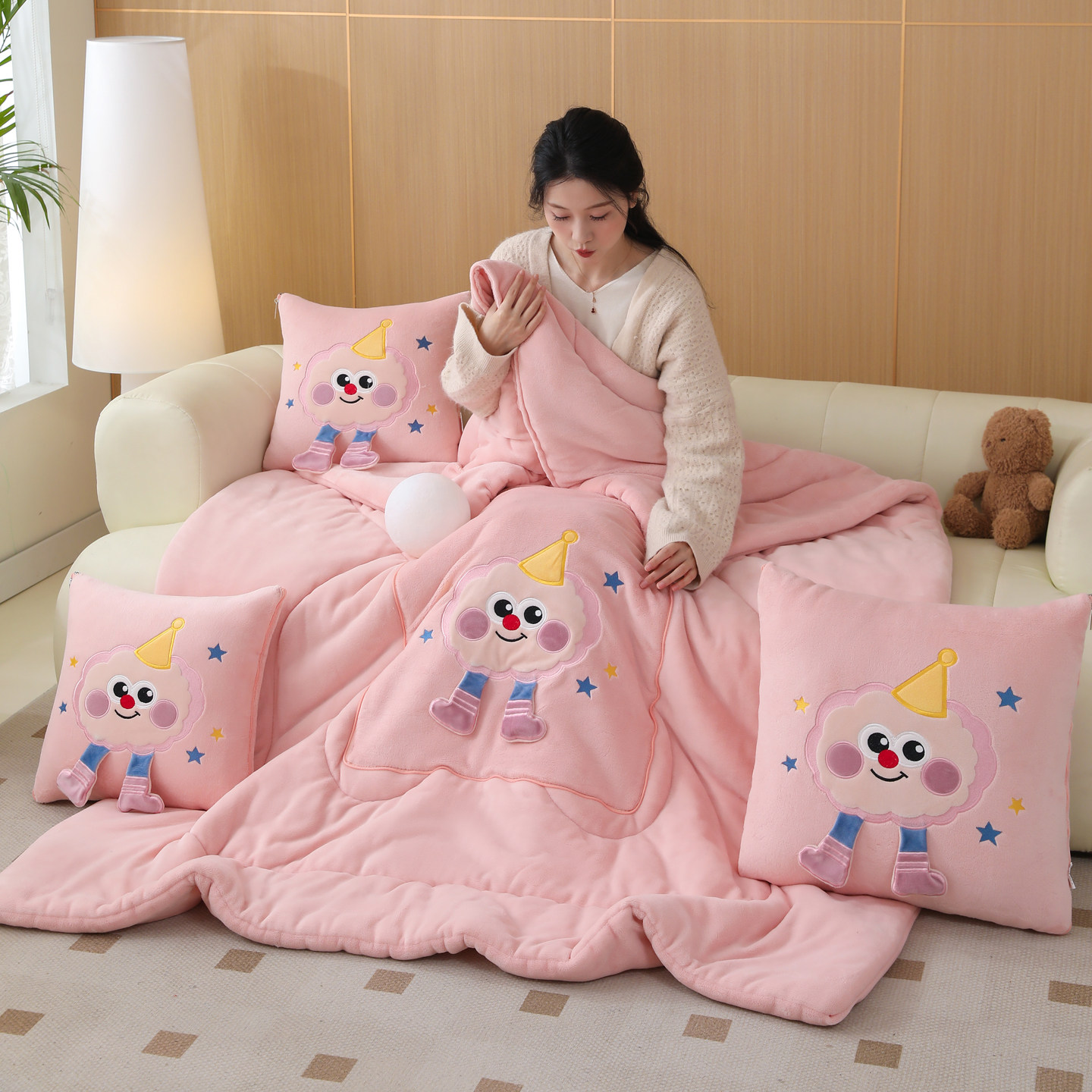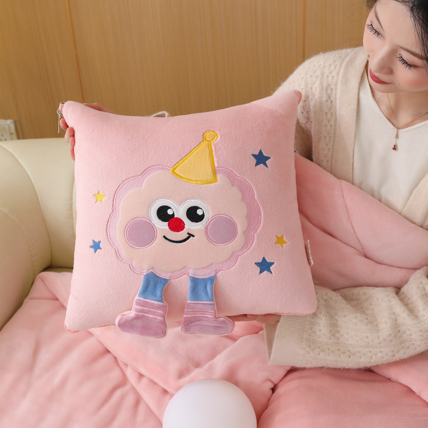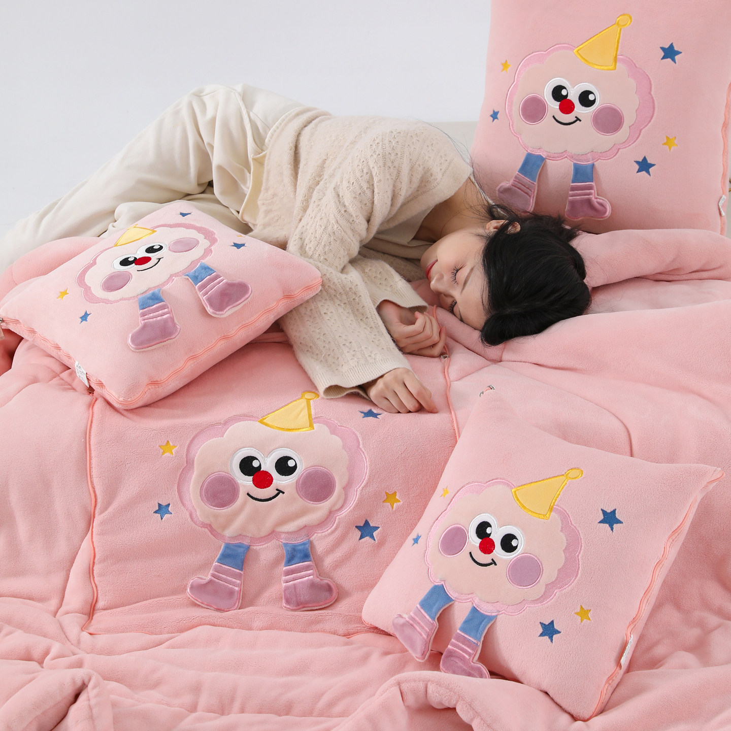 淘卡通可爱抱枕被子两用多功能牛奶绒毛毯车用靠垫办公室午睡空调被