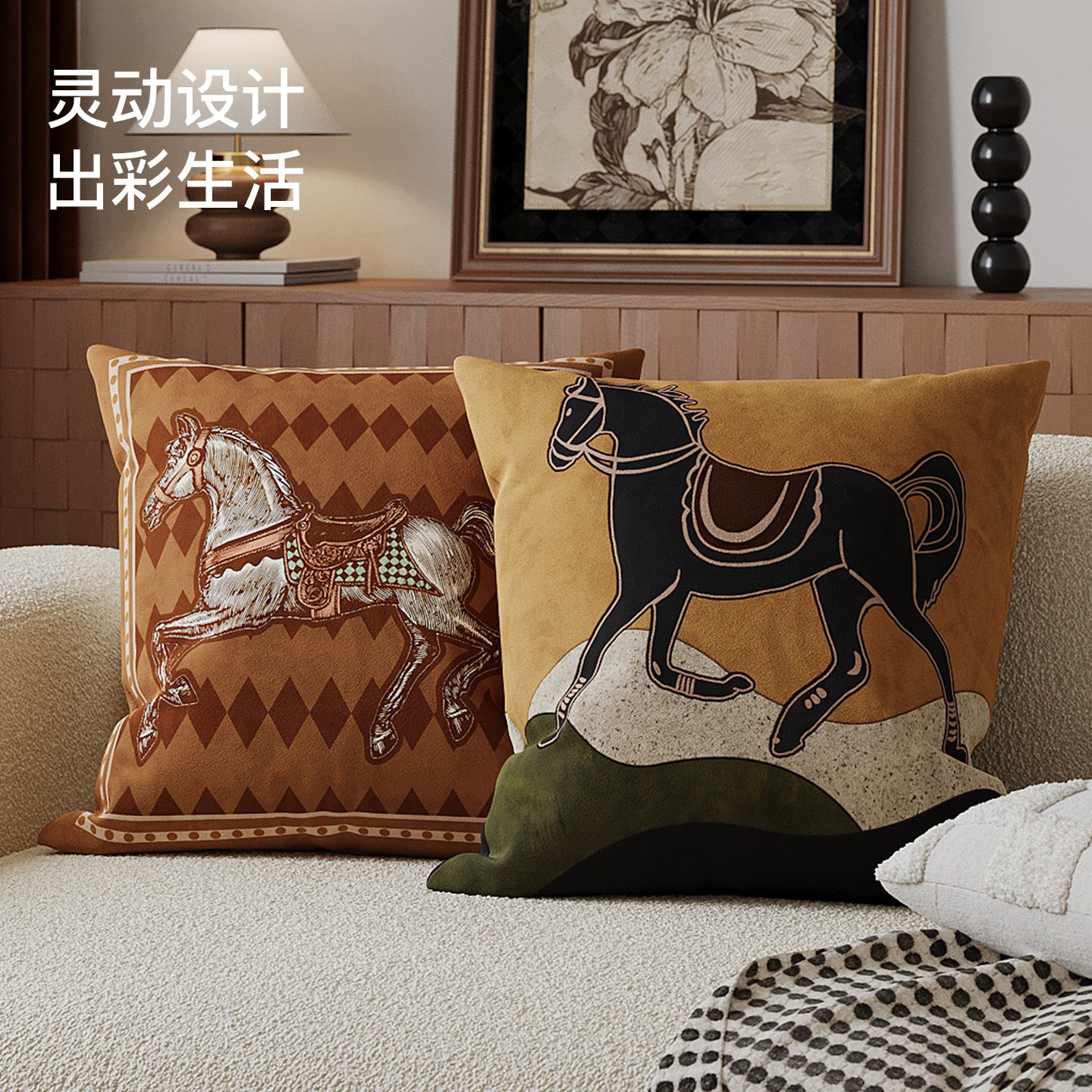淘宝马到成功轻奢高级感中古抱枕客厅沙发靠枕复古卧室床头靠背垫靠垫