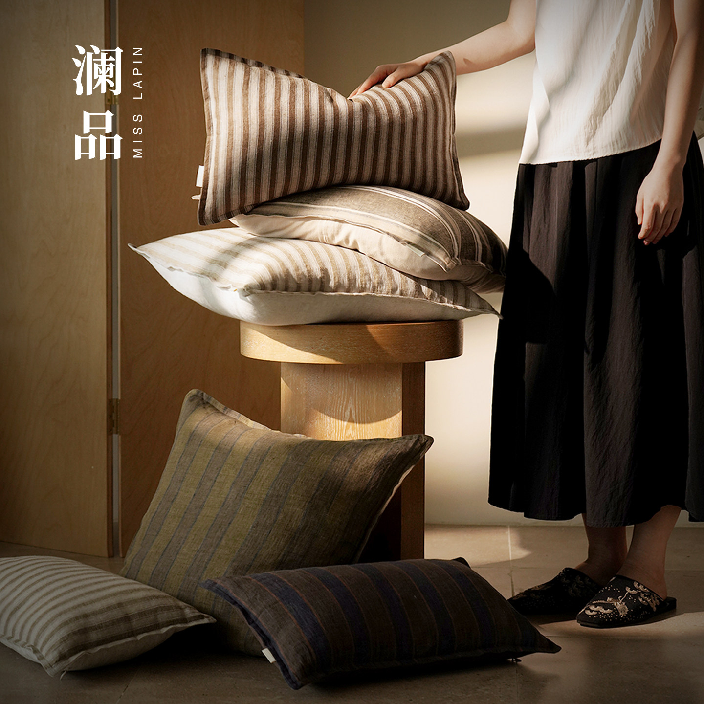 天猫澜品『山奈』侘寂条纹棉麻抱枕客厅靠枕沙发靠垫床头靠包透气腰枕