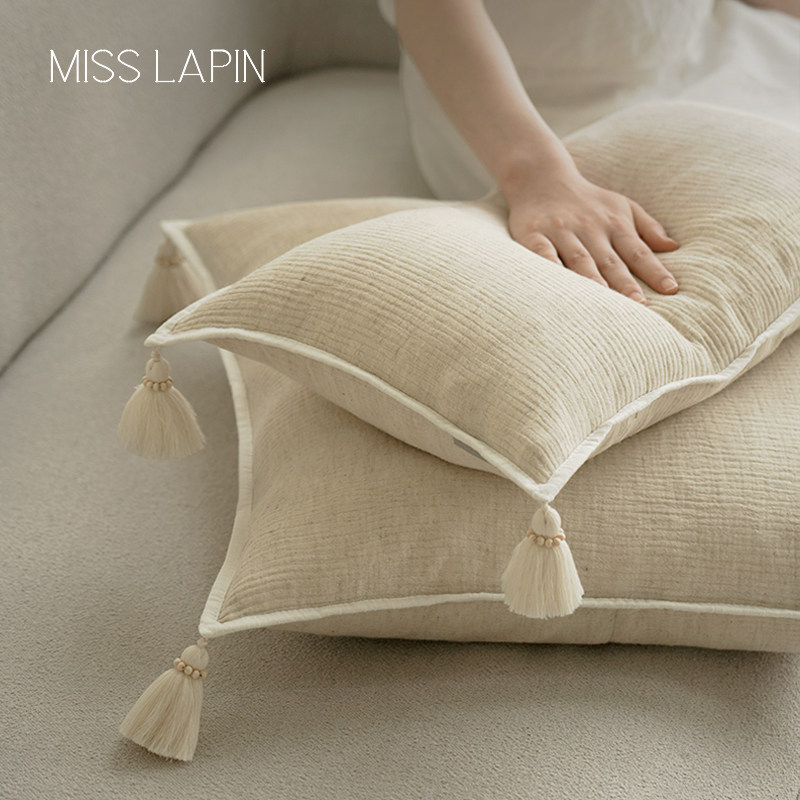 天猫澜品『月弦』木珠流苏棉麻抱枕中式客厅靠垫侘寂靠枕沙发靠背腰枕