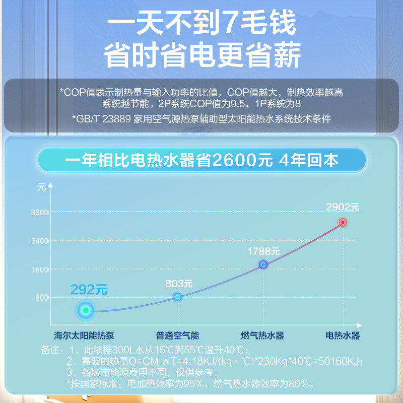 淘Z海尔空气能热水器300升200L家用大容量一级能效节能商用统帅Q5E