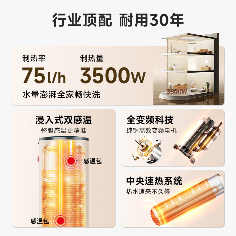 海尔200升家用空气能热水器是2026年推出的全新全变频一级节能新品,采用先进热泵技术,高效节能,省电高达75%以上,达到国家一级能效标准。搭载全变频压缩机与风机,智能调节运行频率,实现快速制热与恒温供水,满足全家连续洗浴需求。200升大容量设计,适合3-5口之家使用。配备智能控制系统,支持手机APP远程操控、语音联动及多种节能模式,使用更便捷。整机采用防腐材质与多重安全防护,耐用可靠。海尔以创新科技打造绿色舒适热水体验,是追求节能、智能、高品质生活的理想选择。