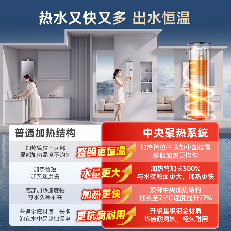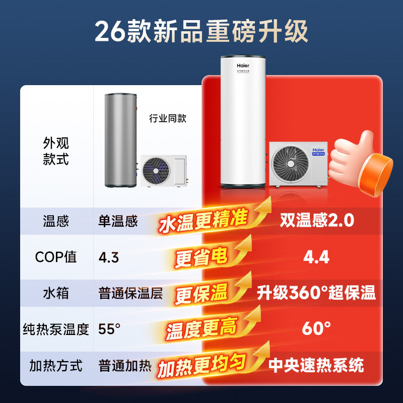 天猫海尔空气能热水器家用300升热泵26年新款超一级节能大水量速热