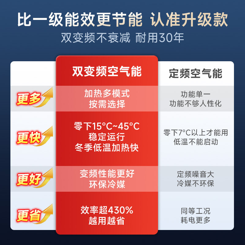[国补]海尔空气能热水器家用300升L统帅商用大容量一级能效变频款