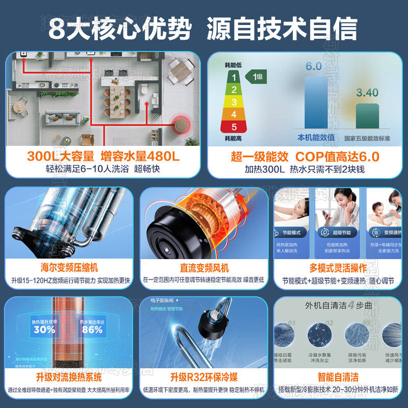 淘宝Z海尔空气能热水器300升200L家用大容量一级能效节能商用统帅Q5E